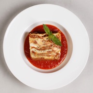 Layers of Béchamel, meat sauce, Ricotta, Mozzarella, and Parmigiano.