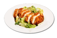 The aforementioned delicious Caesar Salad, with a whole sumptuous lightly breaded chicken filet added.