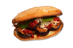 Crunchy, delicious eggplant, served in a panino, topped with Mozzarella and our herbed San Marzano sauce.