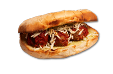 Three of our signature meatballs, San Marzano sauce, freshly grated Parmesan cheese on a gasrlic herb toasted panino.