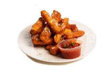 Finely ground cornmeal, breaded and fried to perfection. Lightly seasoned, and topped with freshly grated parmesan. Served with a side of marinara sauce.